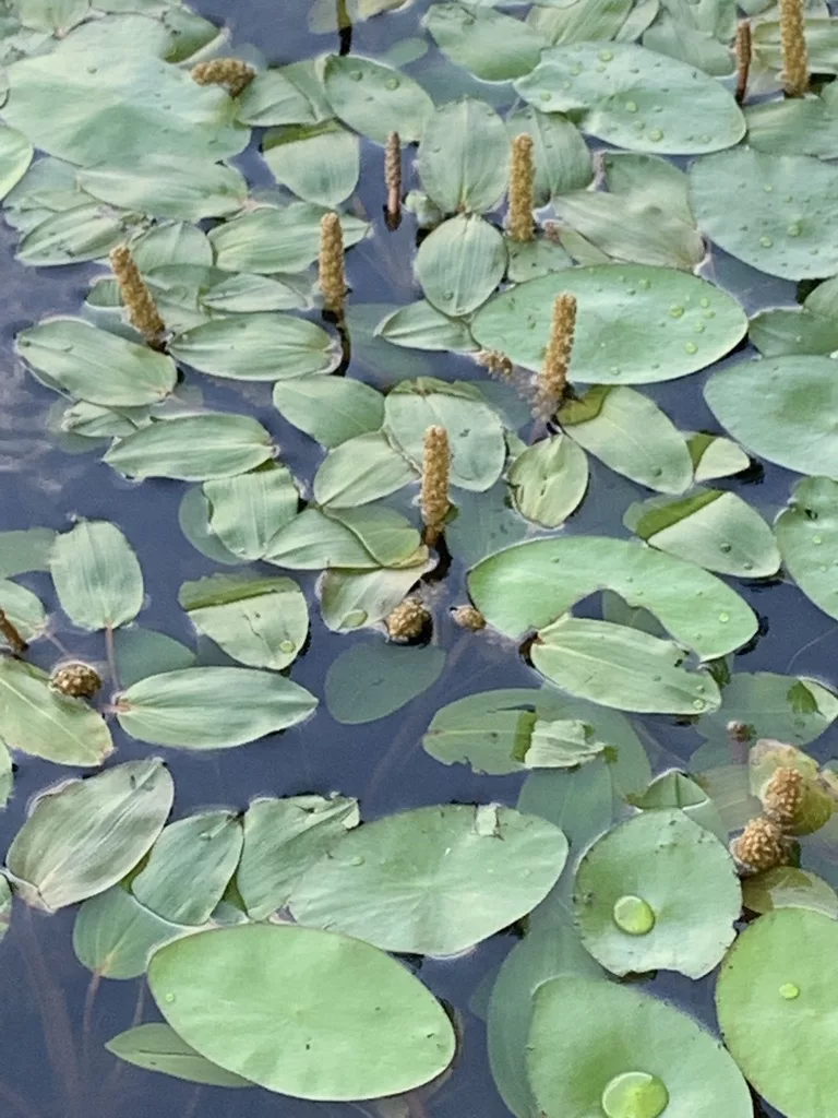 Spatterdock is an emergent aquatic perennial with large heart-shaped leaves attached to long, stout stems. They produce bright yellow cup-shaped flowers that open partially in the morning and close at night. They can spread aggressively through seed and rhizome and are best grown in submerged containers to be kept under control.